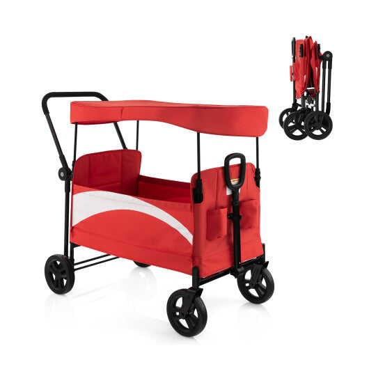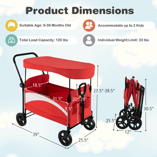 2-Seat Stroller Wagon with Adjustable Canopy and Handles-Red - Color: Red