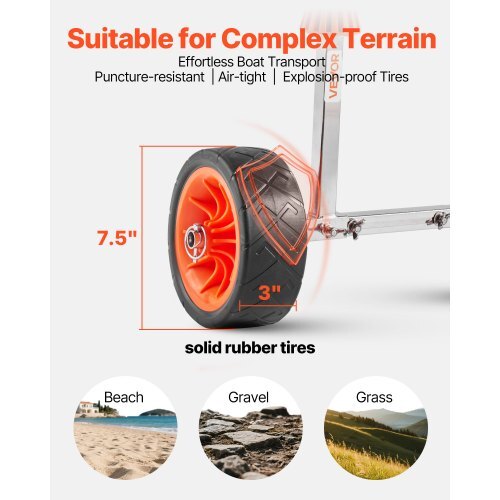 Kayak Cart, 250 lbs Load Capacity, Canoe Cart Dolly with 7.5-inch Solid Rubber Tires & Kickstand, Assembles & Disassembles Within Seconds, Paddle Board Trolley for Kayaks, Canoes, Paddleboards