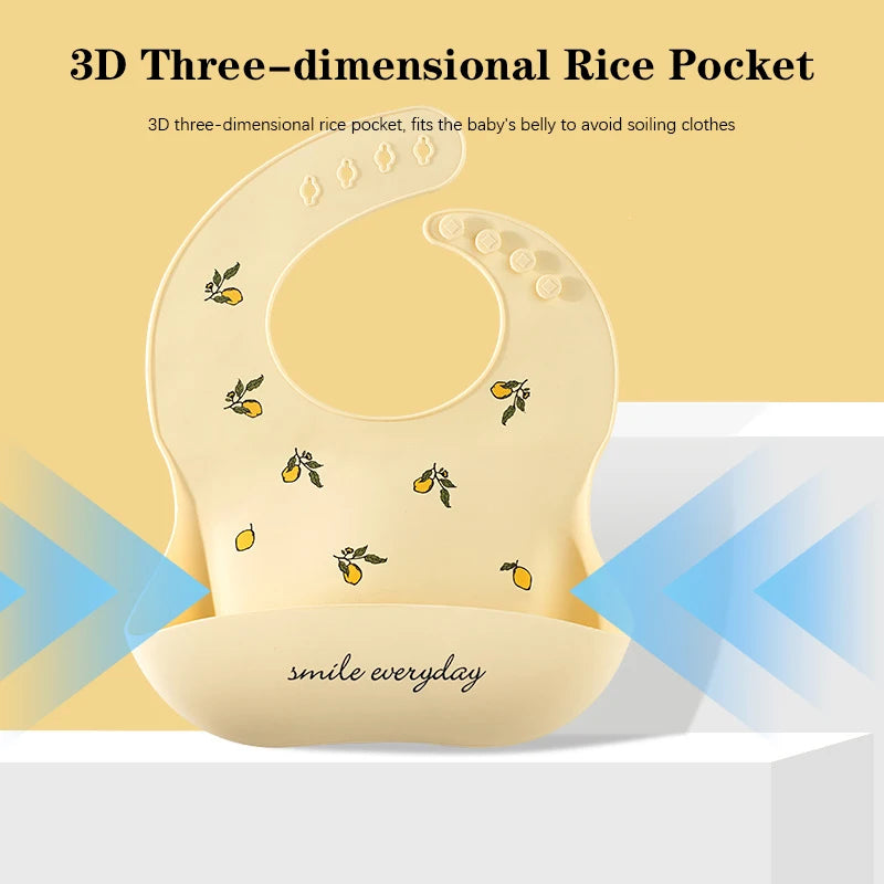 Make mealtime easier and cleaner with these adorable Silicone Baby Bibs, designed to catch every crumb and spill. With charming fruit-themed prints and sweet messages like "warm sunshine" and "smile everyday," these bibs are as stylish as they are practical.