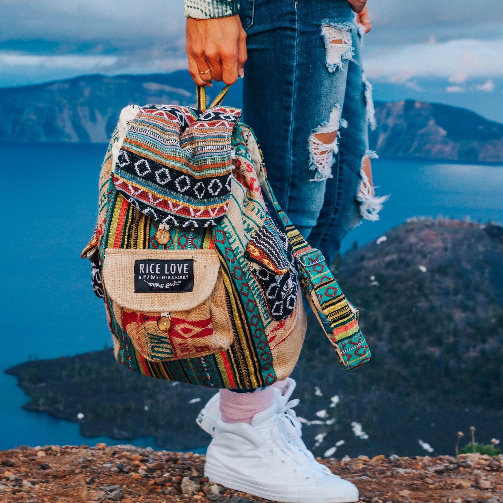 Every backpack is one-of-a-kind! The burlap pieces are recycled from authentic Indian rice bags. Expect slight imperfections. Between fabric, the seamstress who made it, the family who received the rice, and you, every bag has a different story. You are giving life. You are a part of the story.